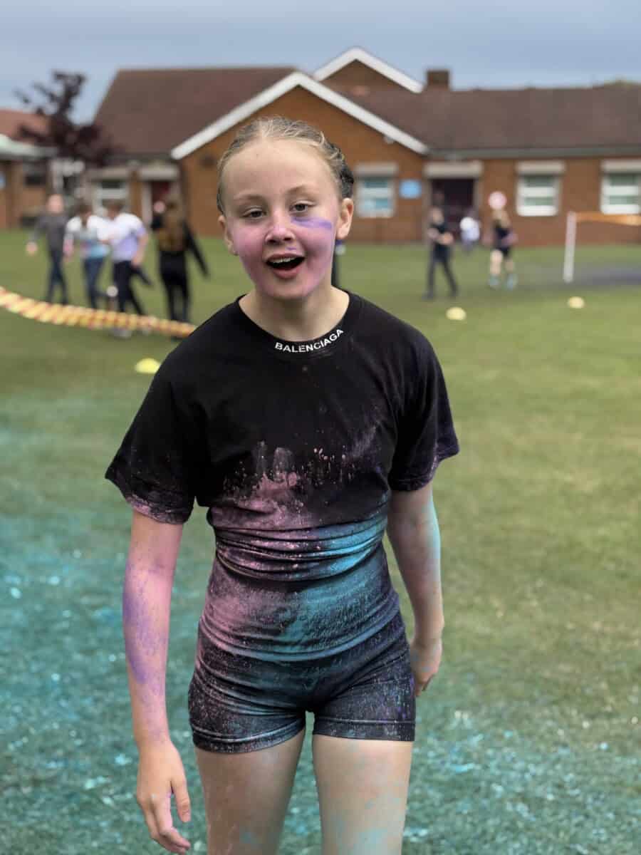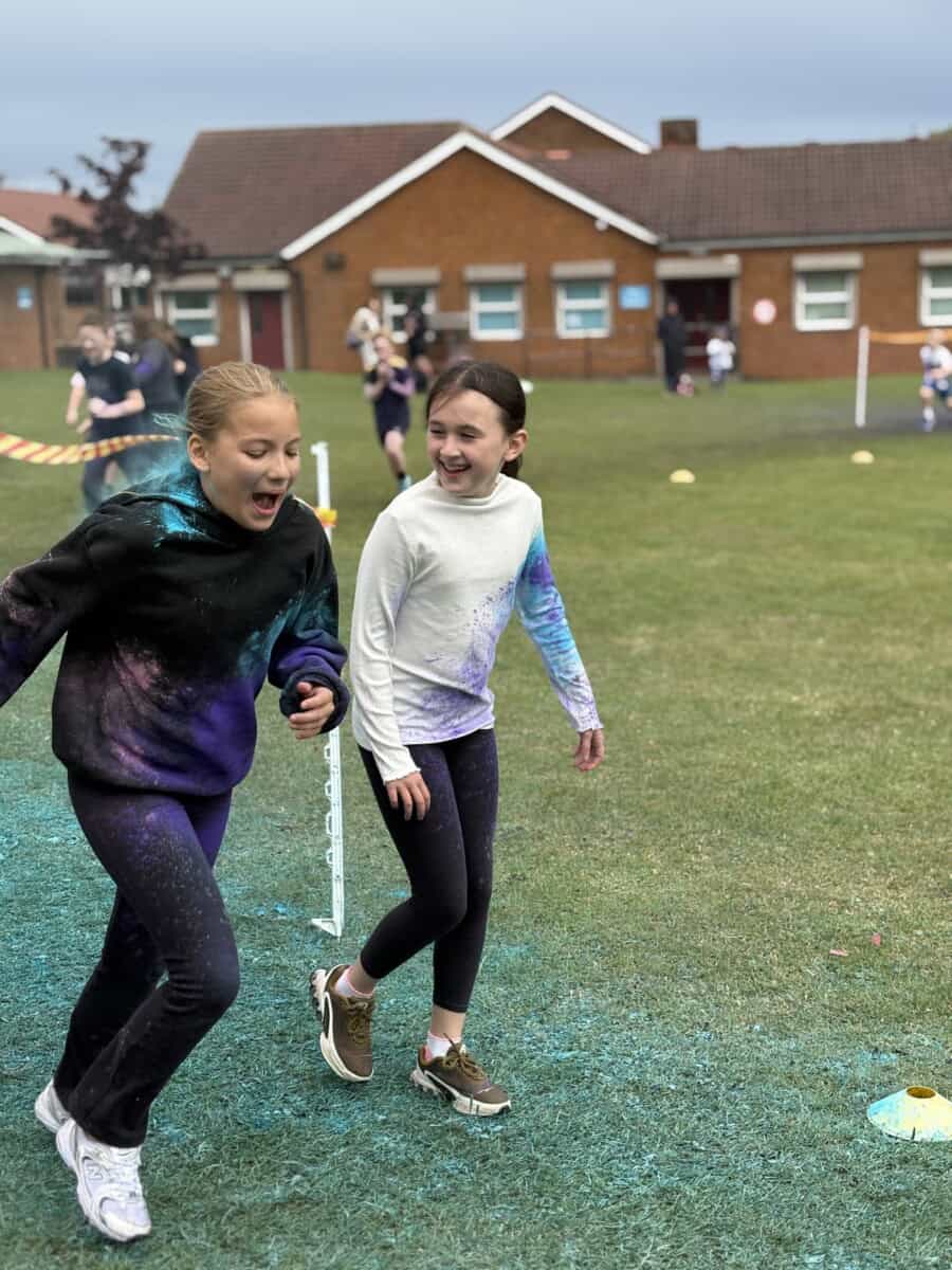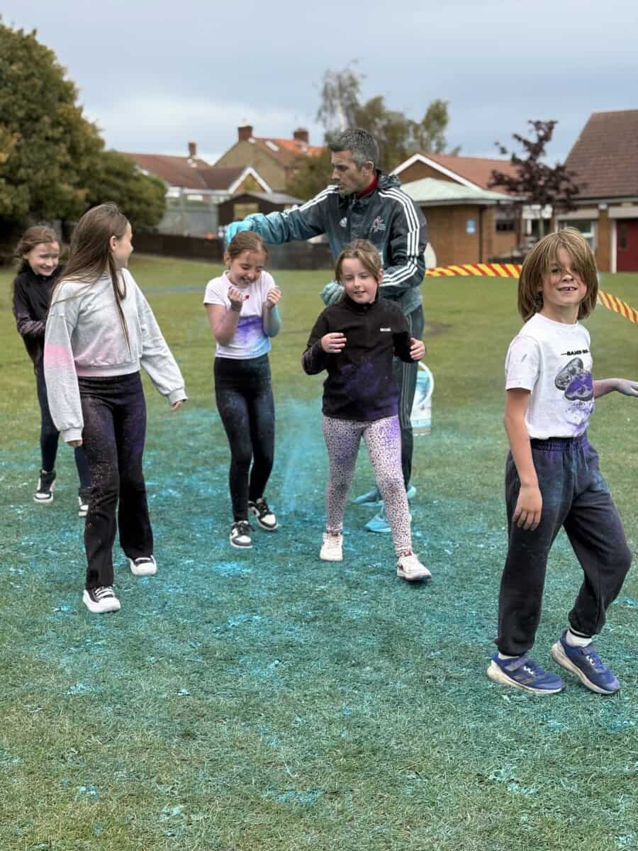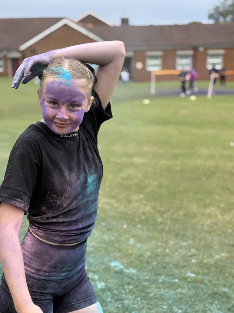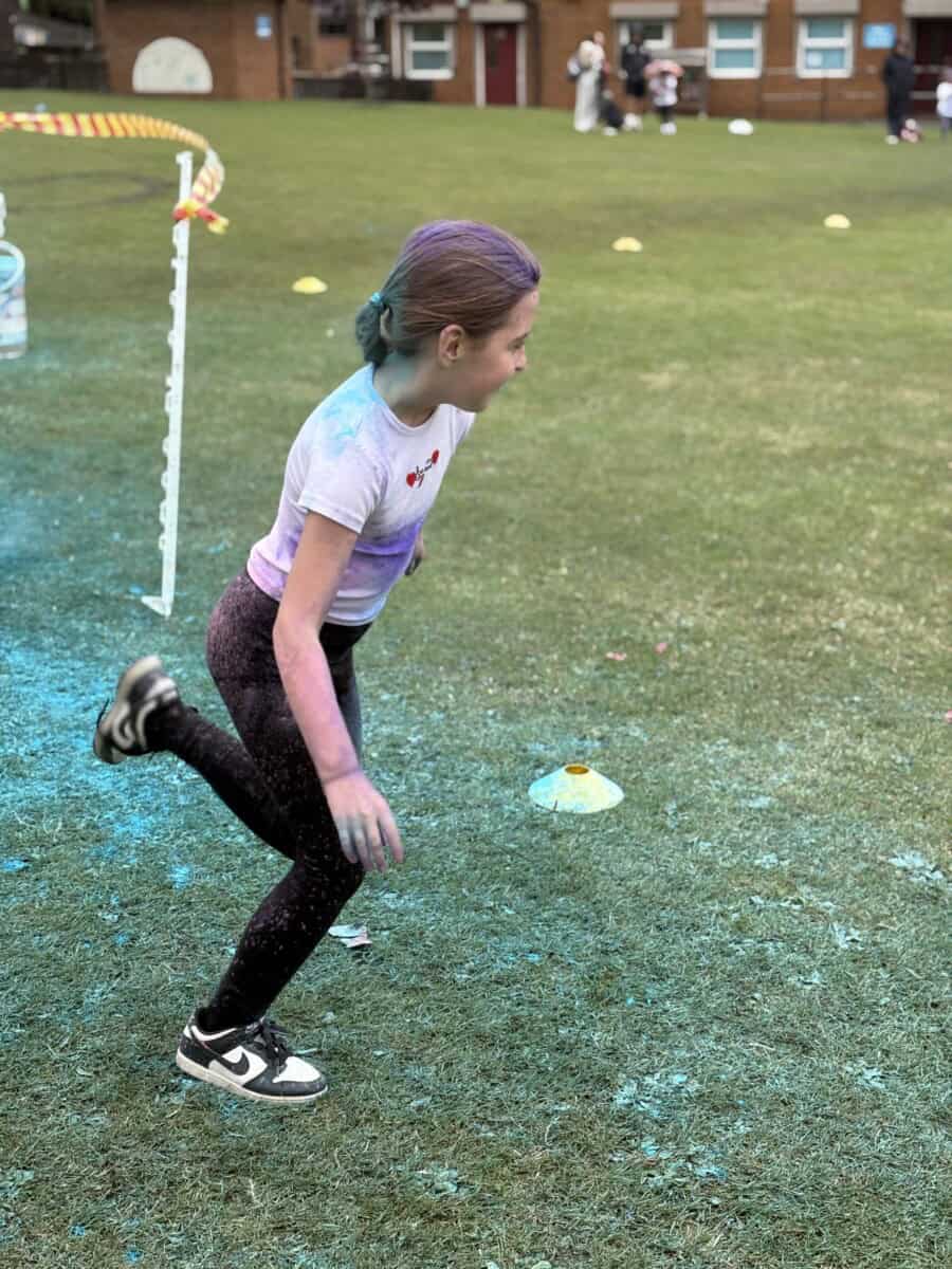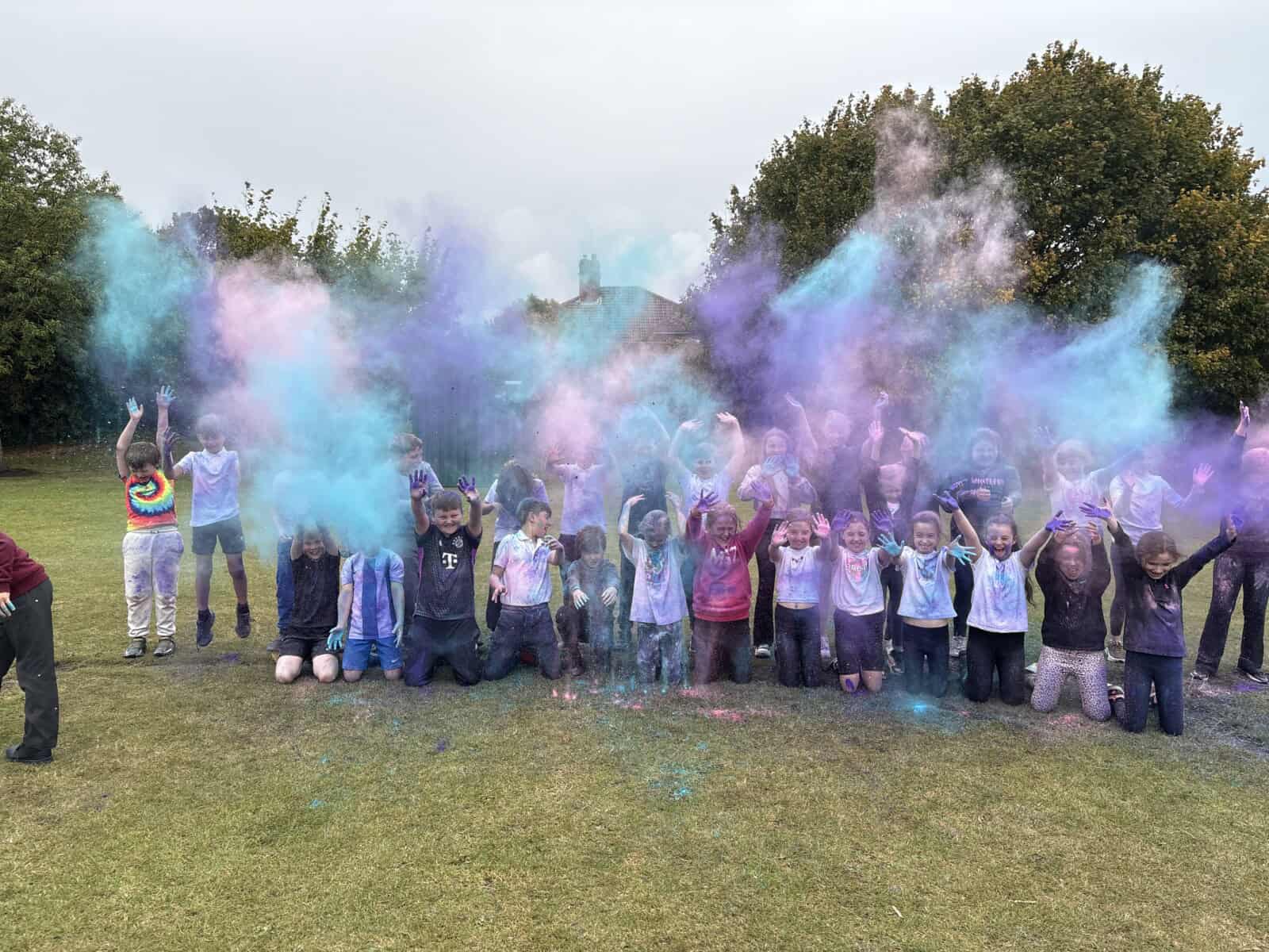 Year 5 Colour Run We have had a bit of a drizzly and very colourful afternoon with the Sports Partnership doing our sponsored colour run this afternoon.