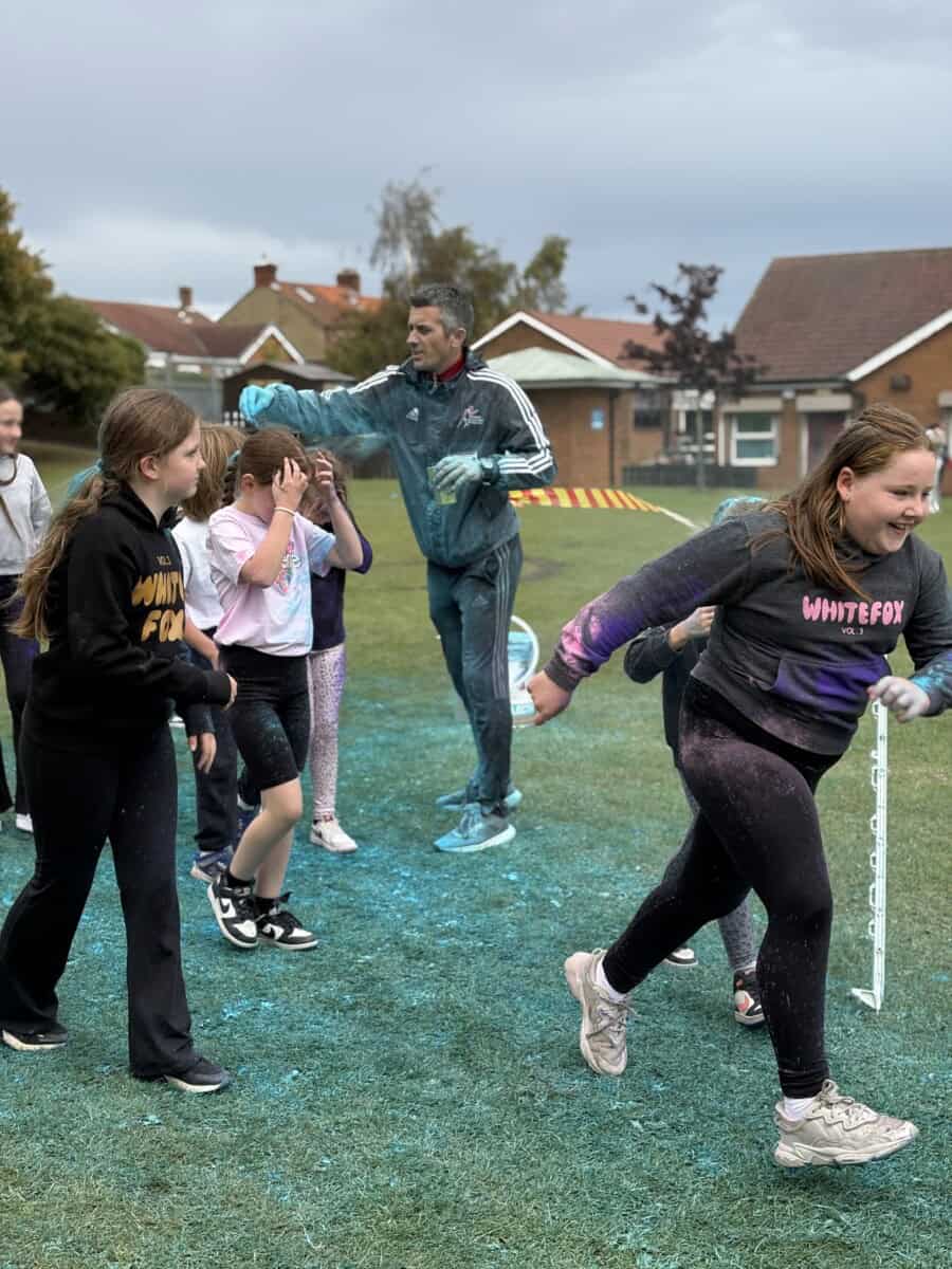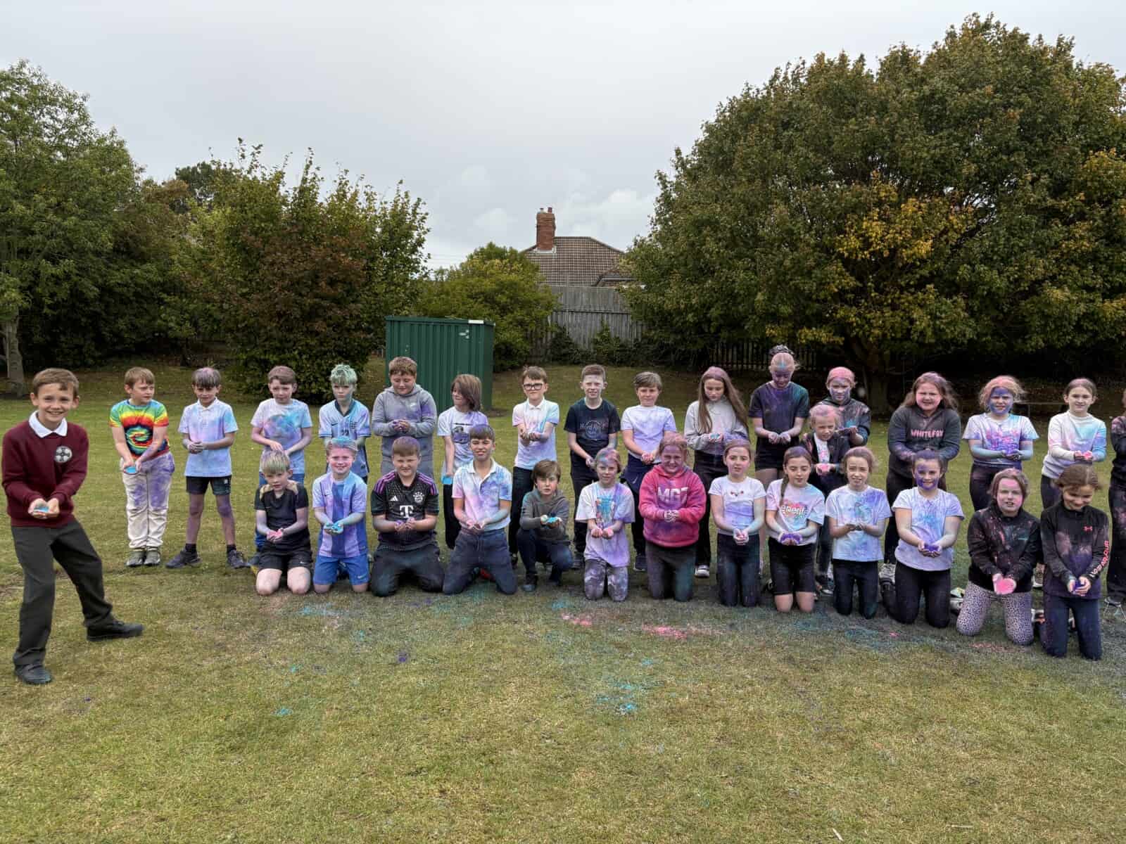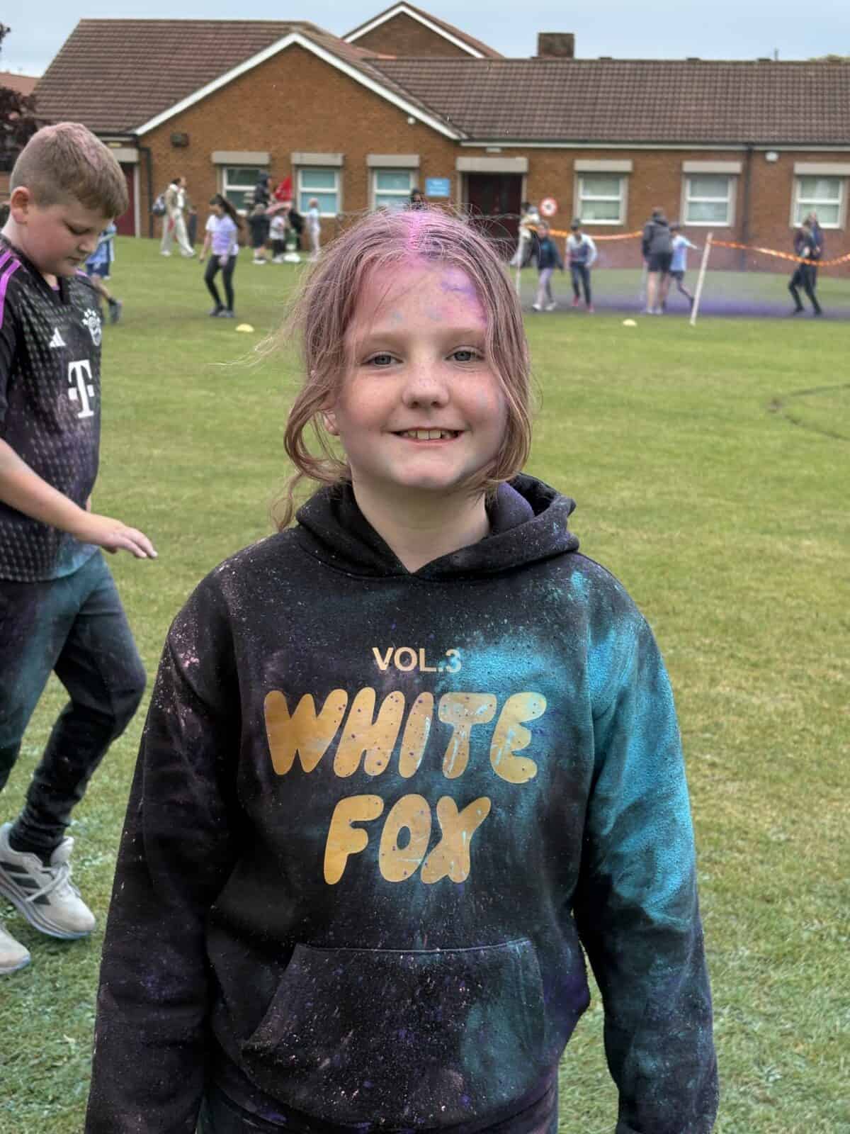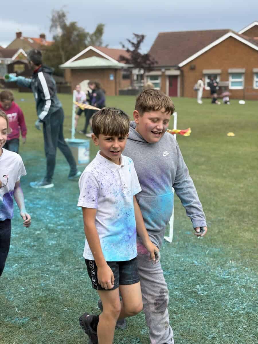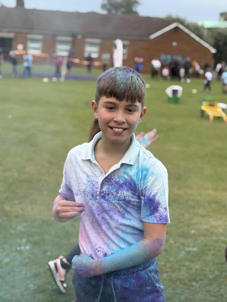 Year 5 Colour Run We have had a bit of a drizzly and very colourful afternoon with the Sports Partnership doing our sponsored colour run this afternoon.
