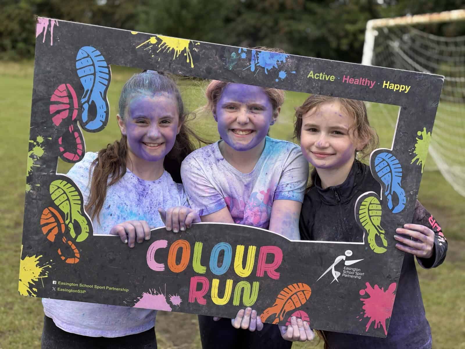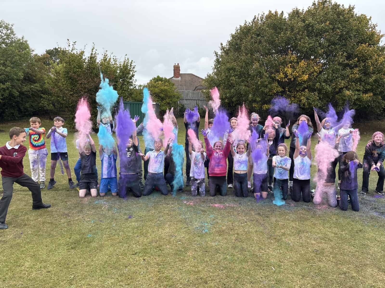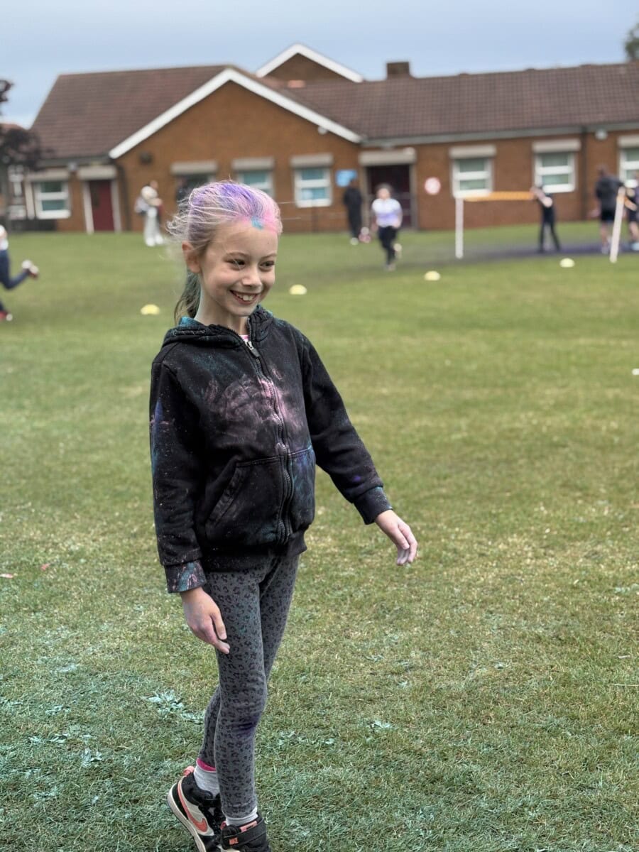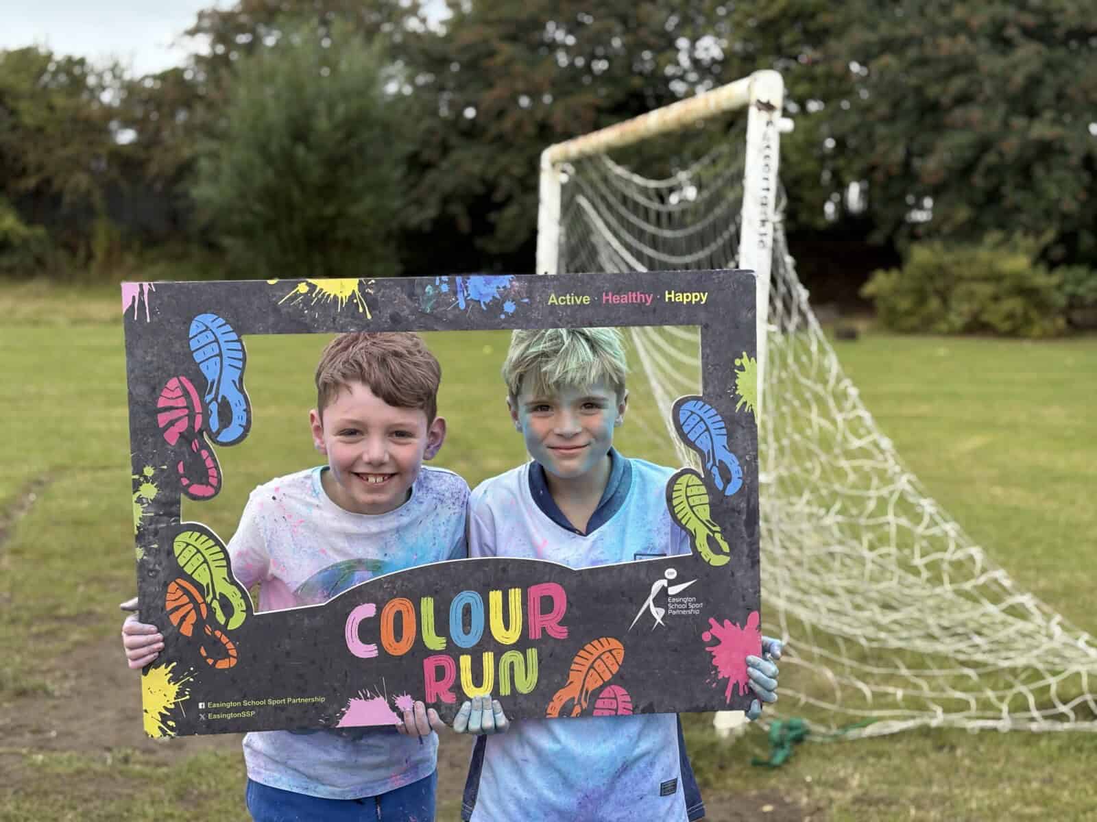 Year 5 Colour Run We have had a bit of a drizzly and very colourful afternoon with the Sports Partnership doing our sponsored colour run this afternoon.