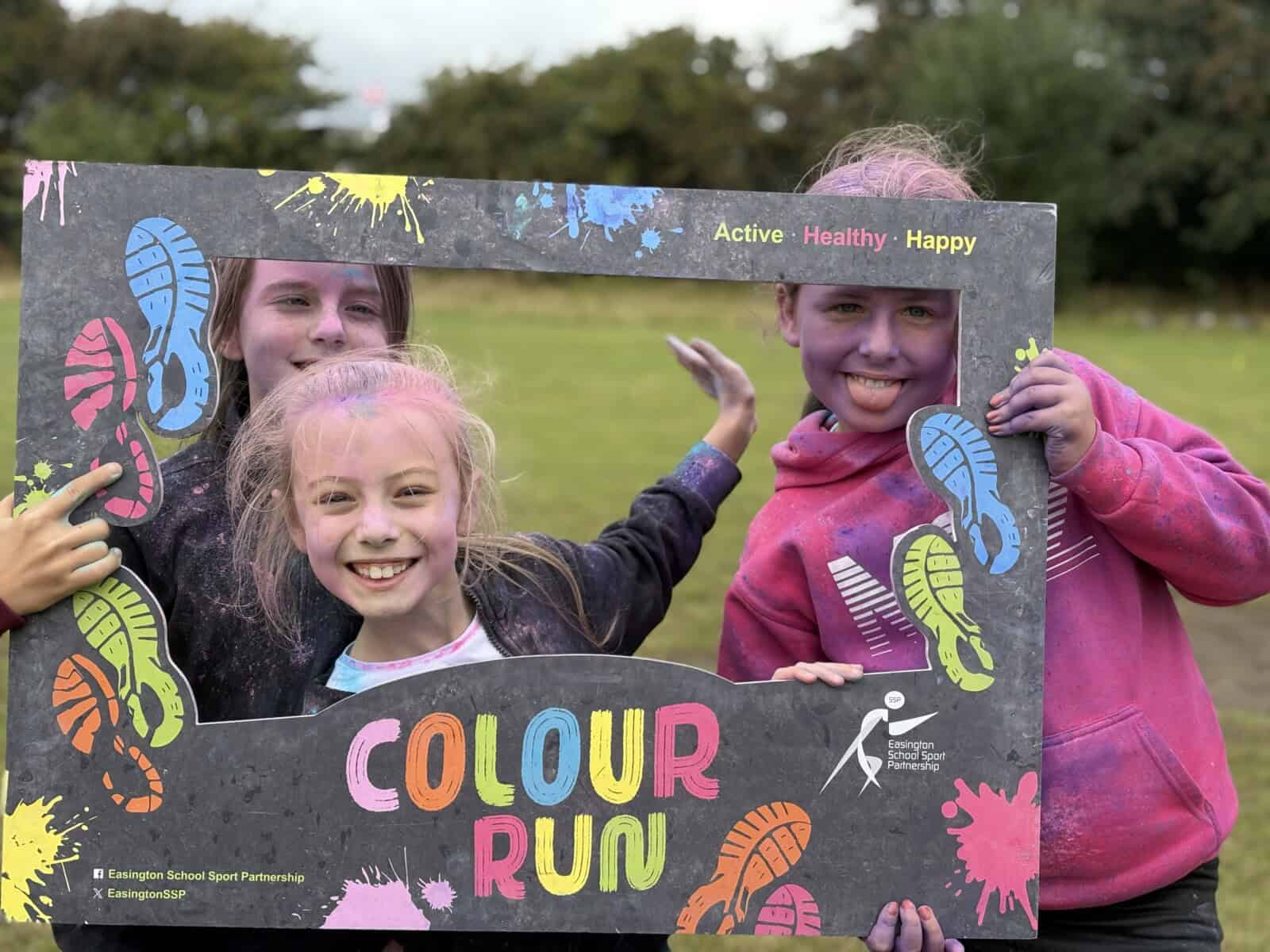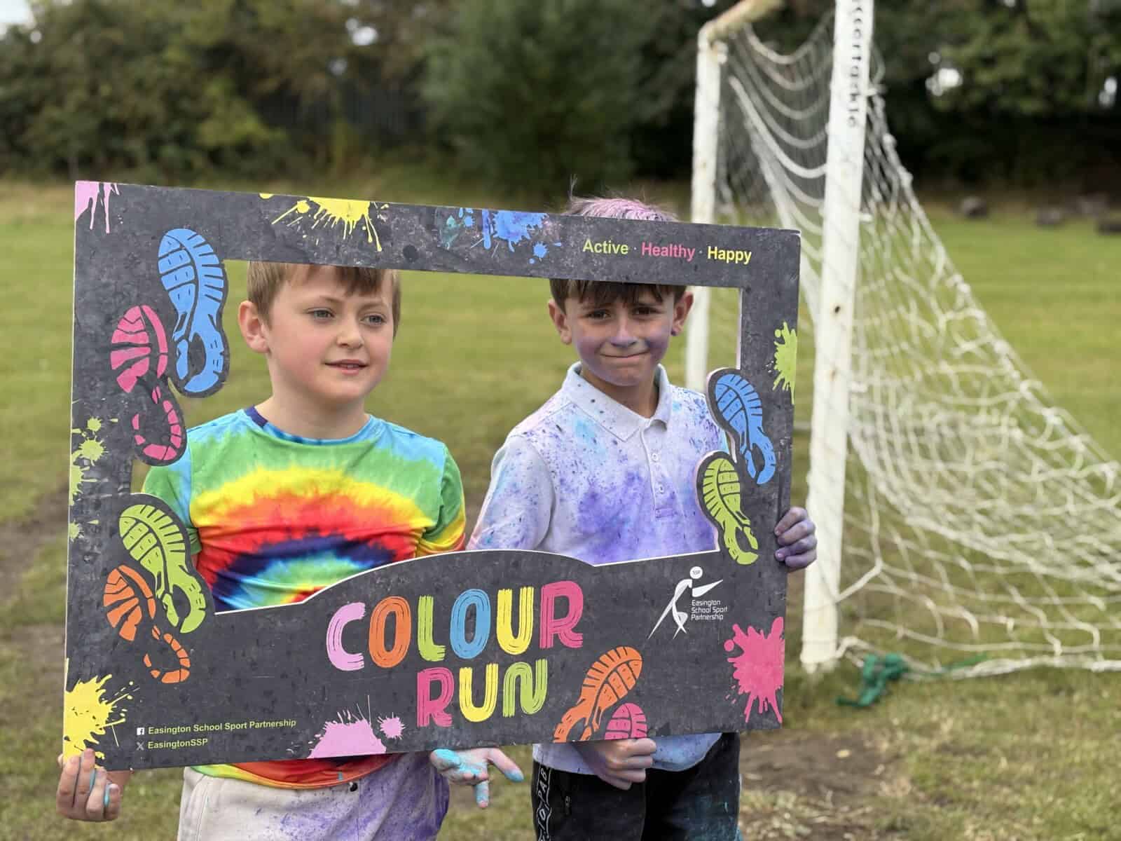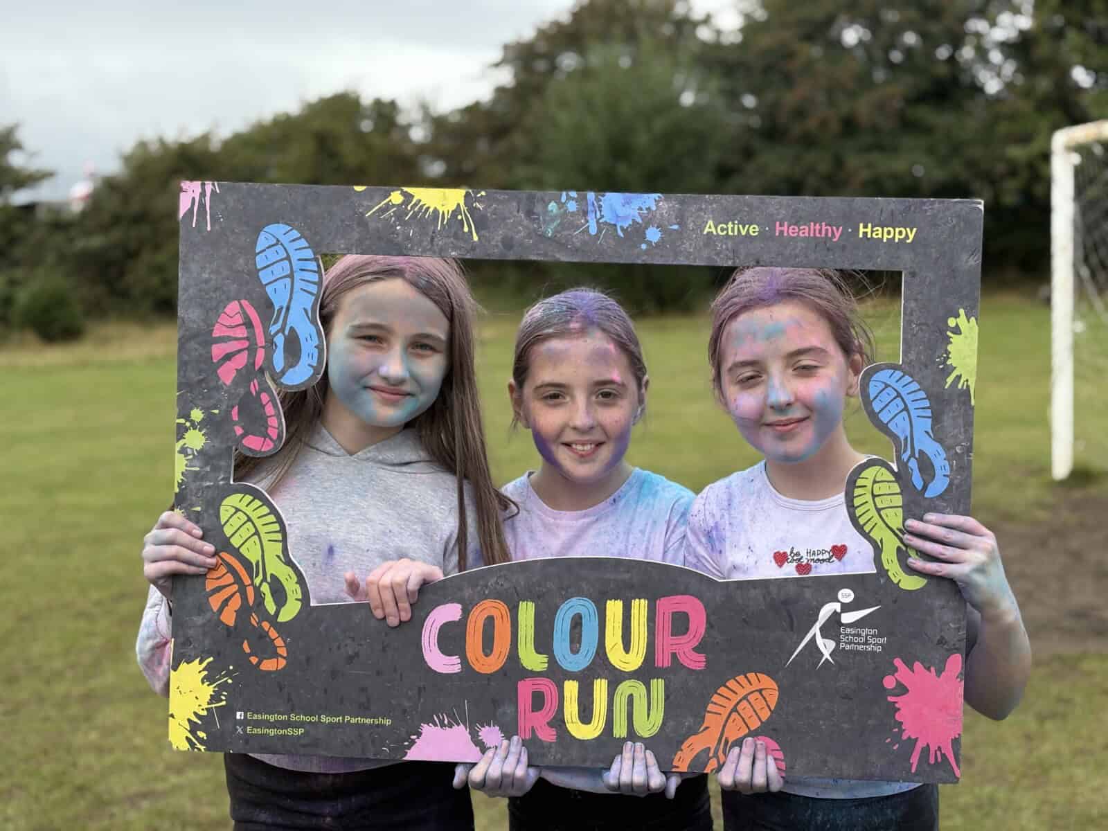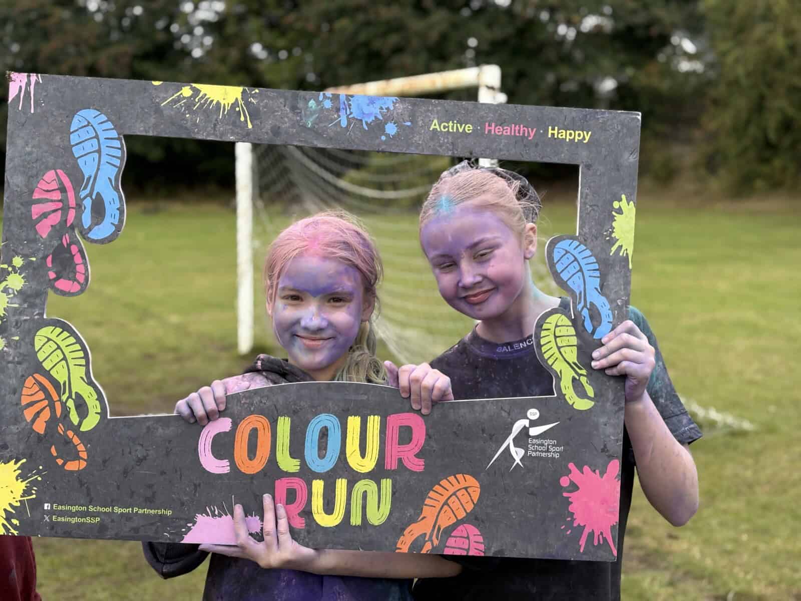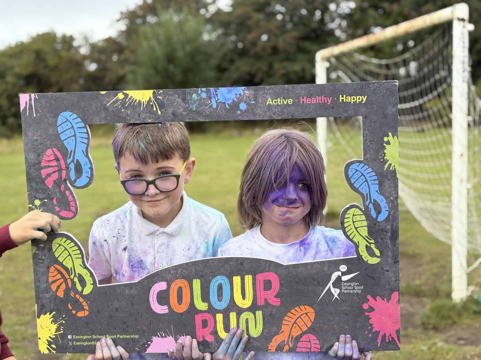 Year 5 Colour Run We have had a bit of a drizzly and very colourful afternoon with the Sports Partnership doing our sponsored colour run this afternoon.