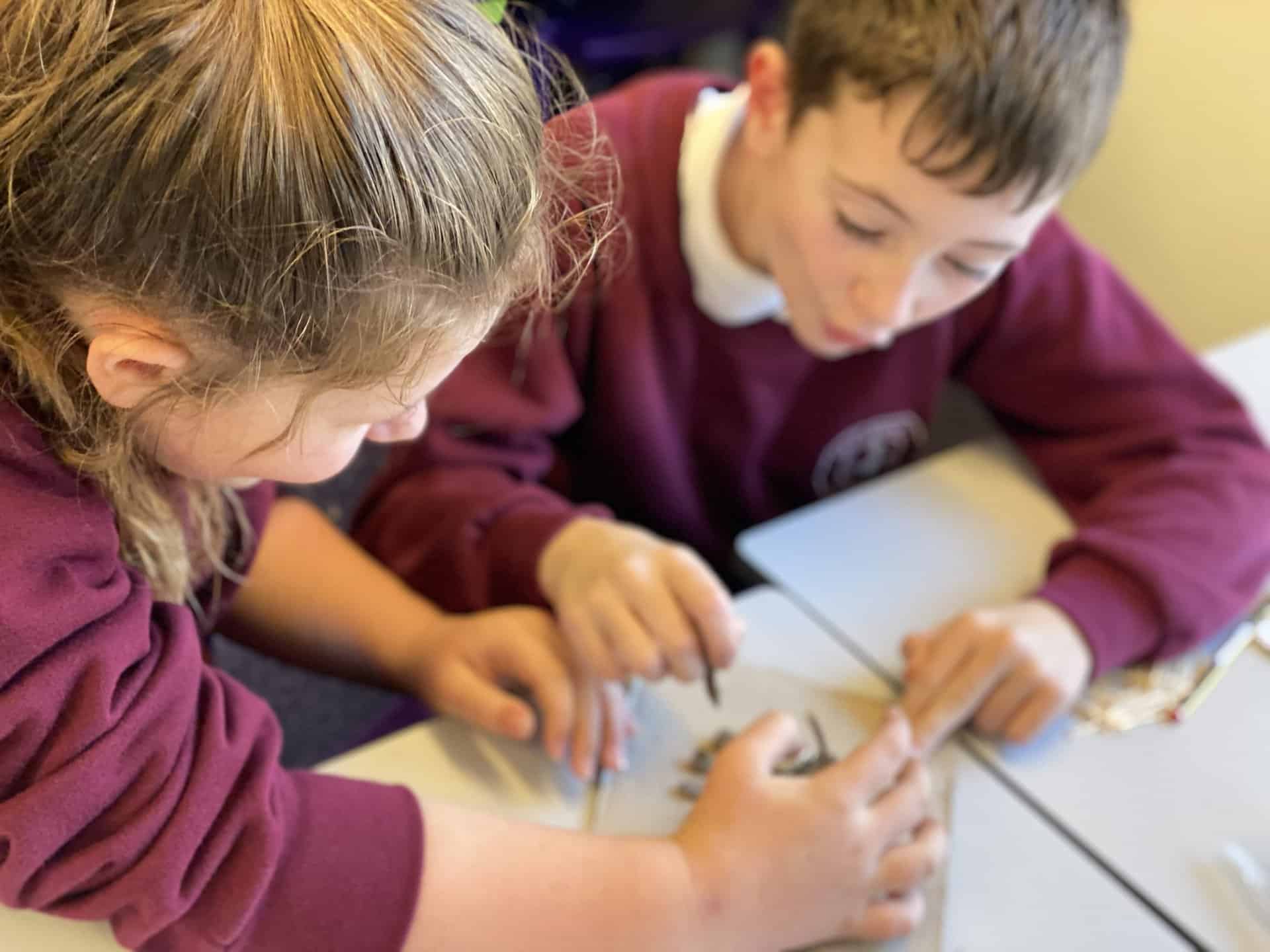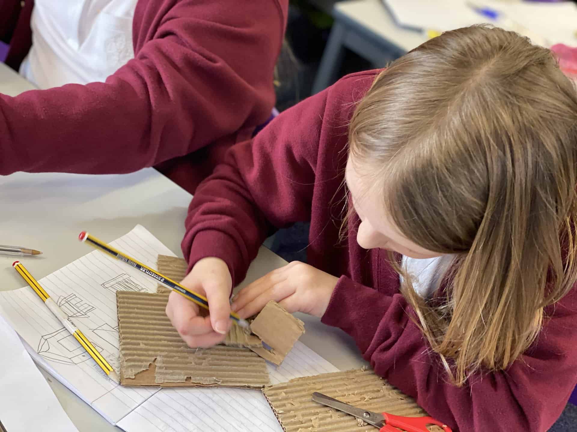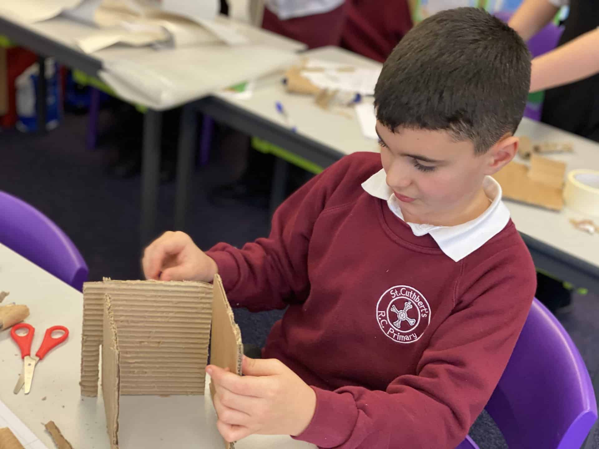 We thought about the things we would find in an Anglo Saxon village and worked in teams to make strong structures using triangle supports and slots to secure the card. A lovely (if slightly messy) afternoon! Great to see our home learners who are isolating also joining in.