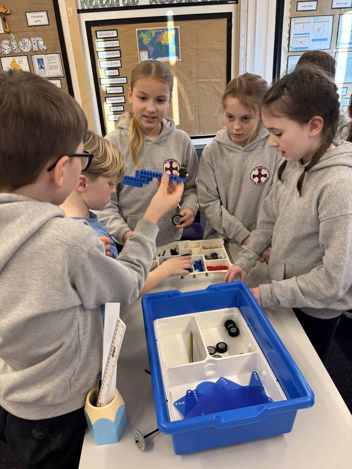 Last week, Year 5 took part in a Lego workshop provided by North East Raising Aspirations. Our task was to work in groups to build a vehicle with 4 wheels that would travel down a ramp. We had a list of things that had to be included on the vehicle and then we could add our own design features. After testing our creations out, we had a competition to see which vehicle travelled the furthest. The workshop was a great opportunity for us to work with others, practise our listening and collaboration skills and use problem solving to create an end product.