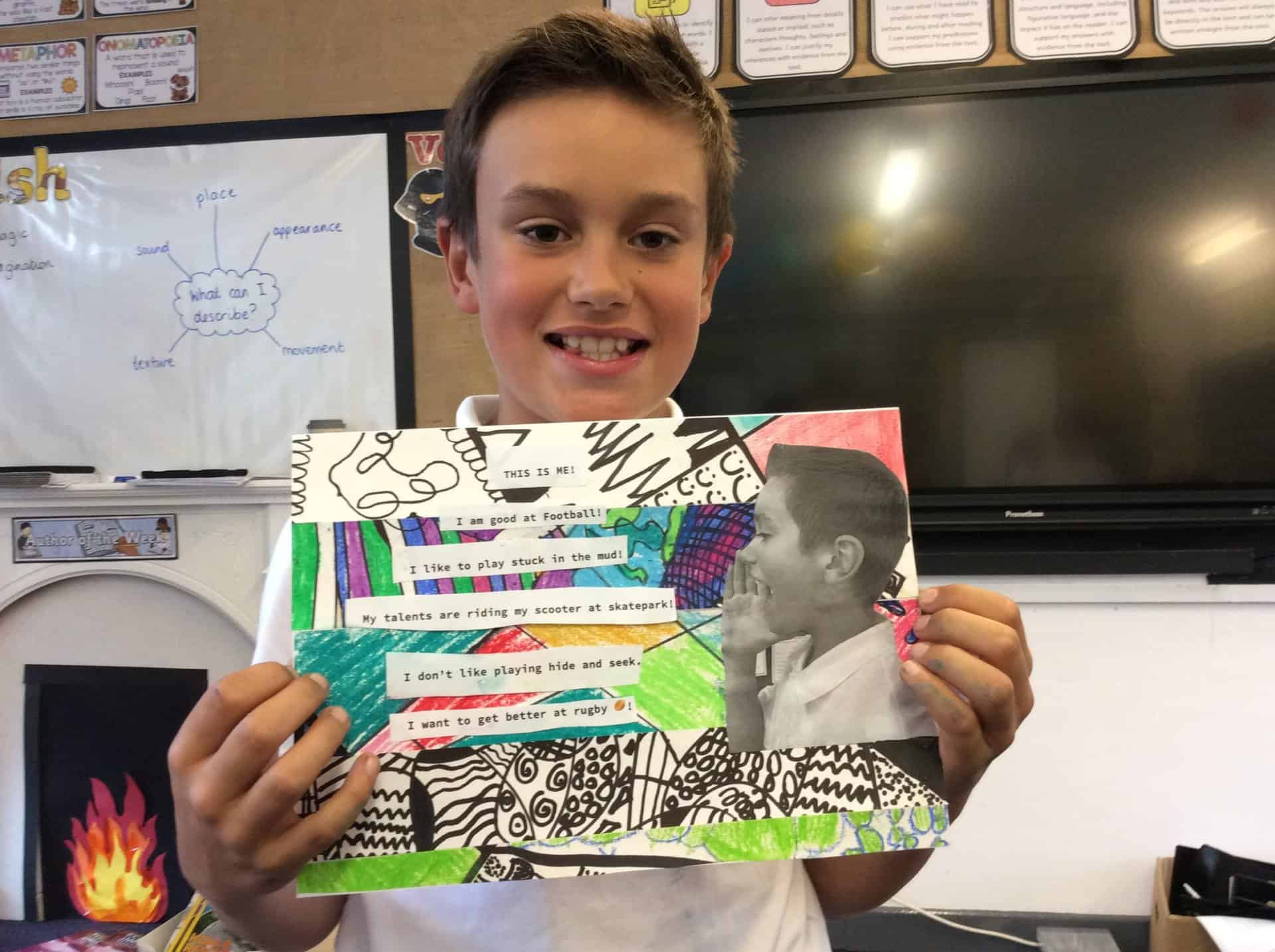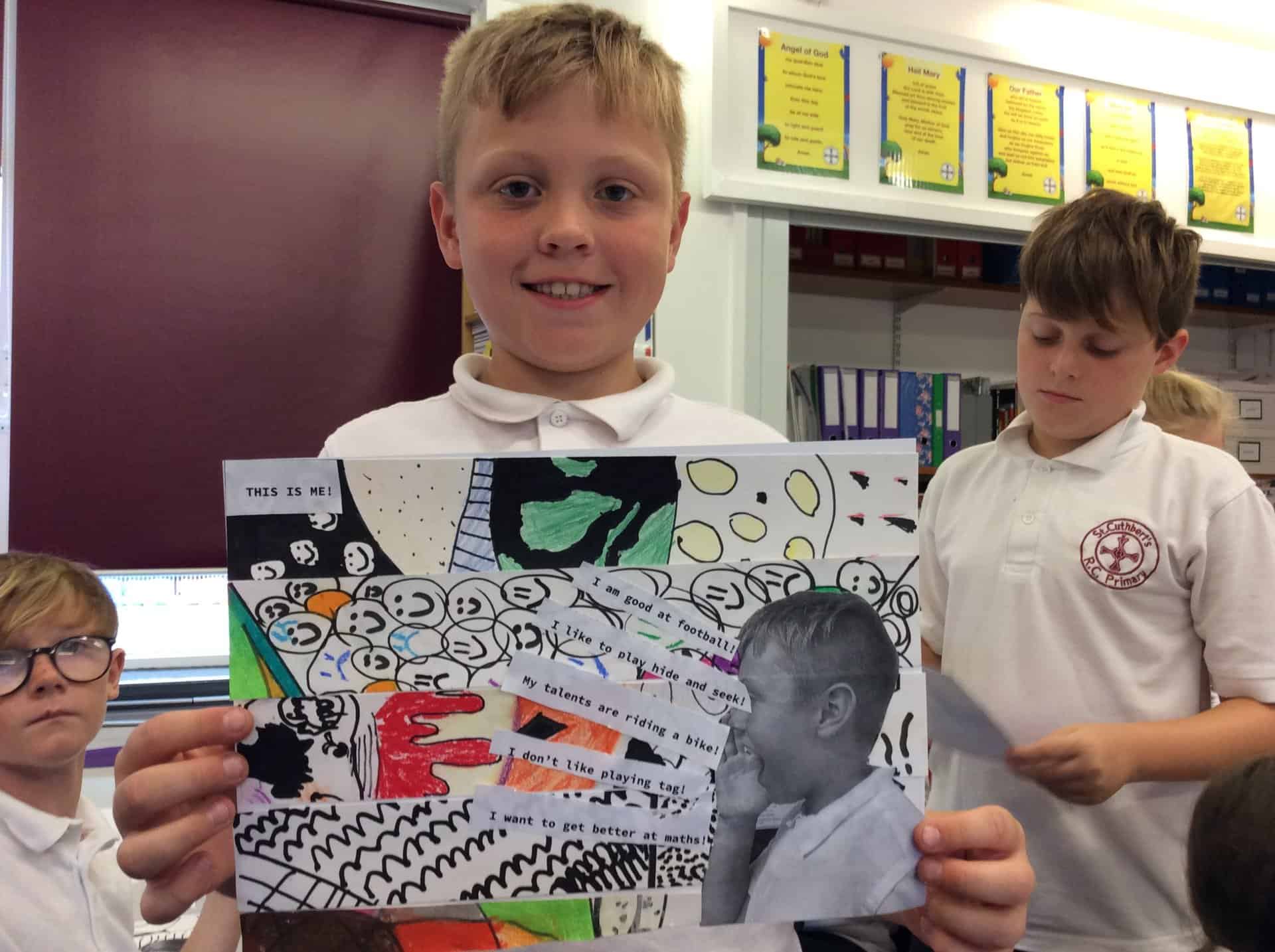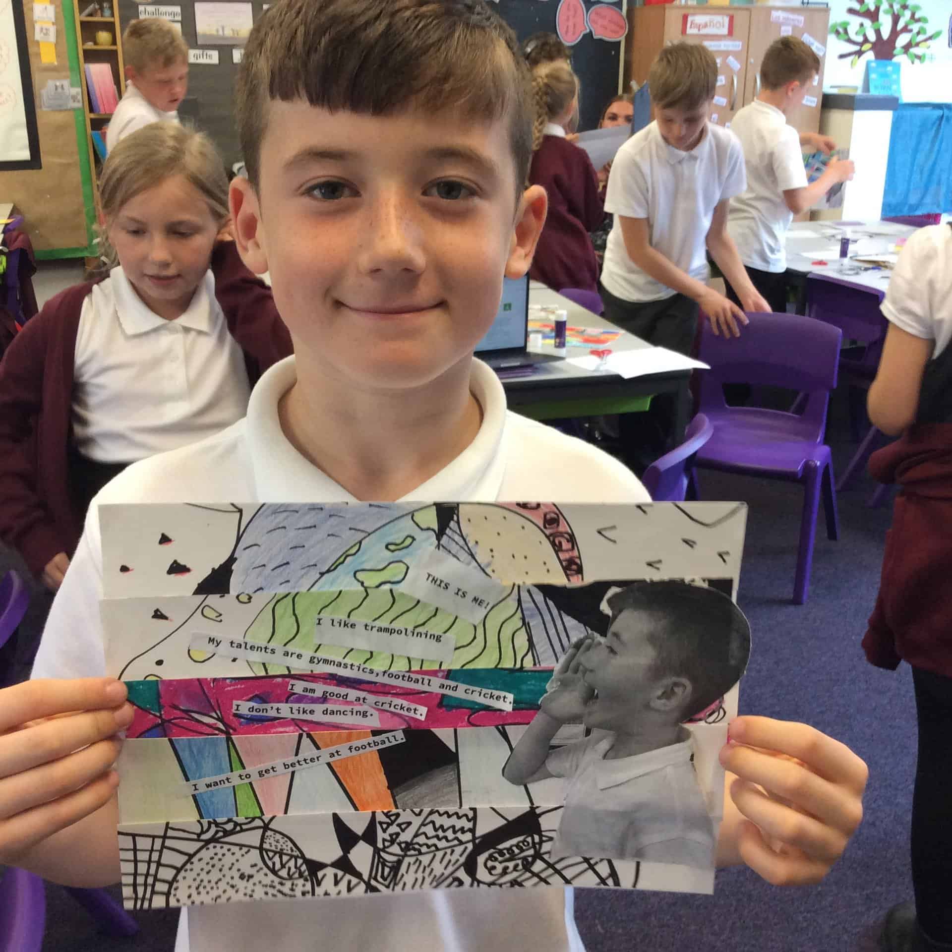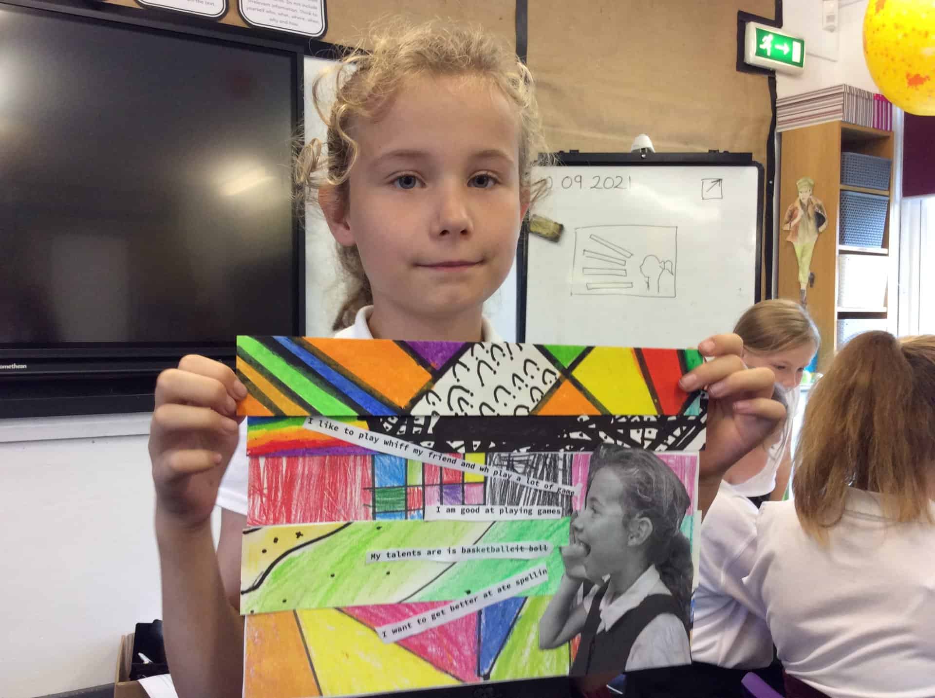 We are thinking this half term about the things that make us unique – our talents and qualities. We’re thankful that God made us and loves us just exactly the way we are. We drew some zentangles then cut them up to make some unique pieces of art that shout out about the things that make us US!